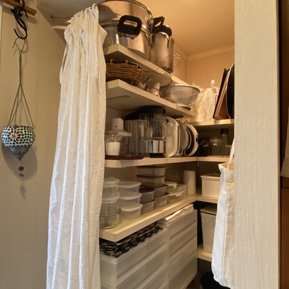 ガスコンロ近くにあるこの小さなキッチンパントリー